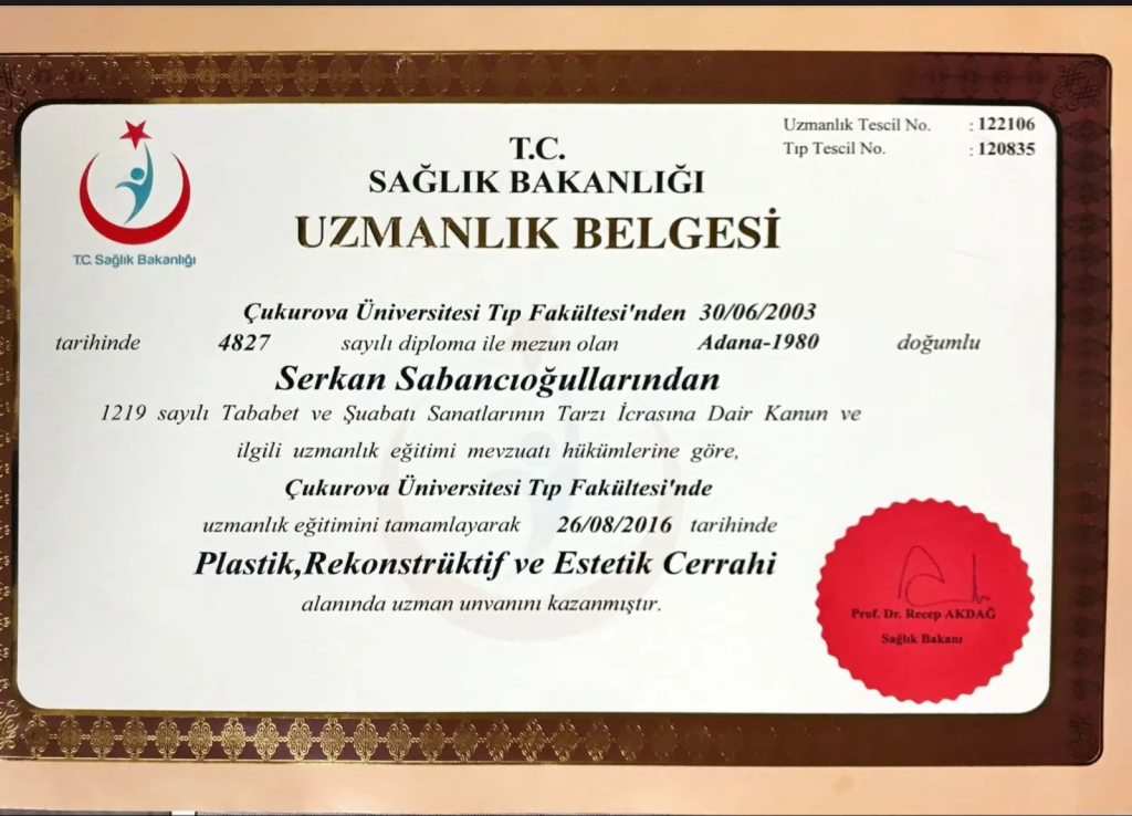 During his residency, Dr. Serkan developed an innovative vibration-assisted micro-motor device that contributed to advancements in surgical precision. Throughout his early medical career, he gained extensive experience in reconstructive surgeries for patients with severe facial burns. His years of hands-on practice have shaped his patient-focused, meticulous, and natural-result-oriented surgical approach.
